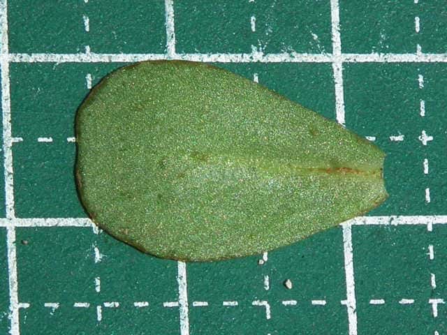 | ▼葉は長さ1.4〜1.8cm。(左の2個は葉柄がとれている。) | ||