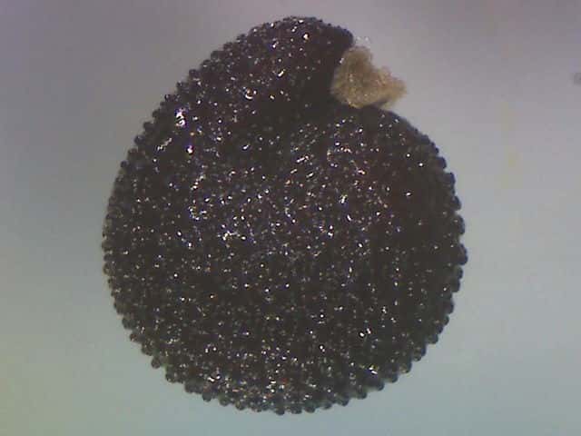 | ▼種子の表面には微細な突起が密生する。 | ||