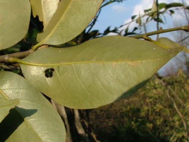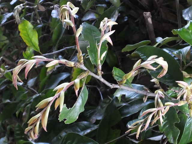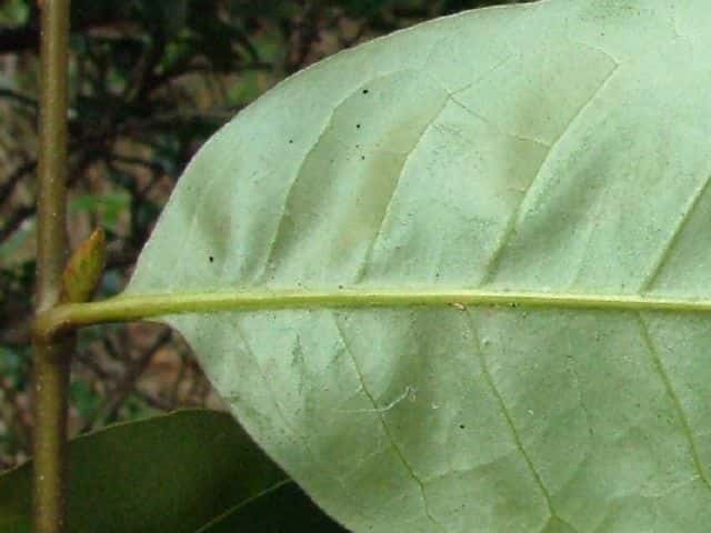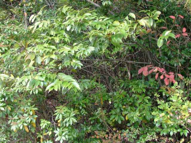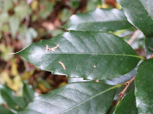 | ▼2007年11月10日 葉の上部に波状の鋸歯。 葉裏は光沢がある。 東忌部 | ||