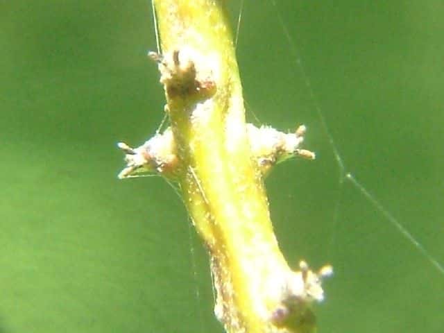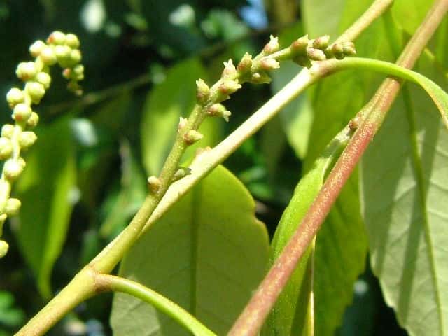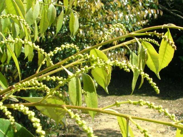 | ▼雄花序は本年枝の下部につく。 | ▼2010年6月2日 玉湯 | |