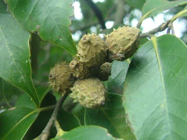 | ▼2013年10月21日 落下した果実 玉湯 | ▼3裂した殻斗に包まれた果実。 | ▼殻斗を1一部除いた。 |