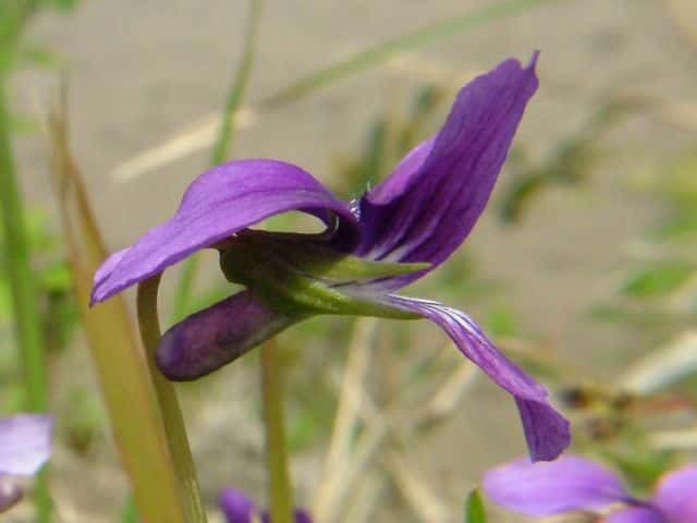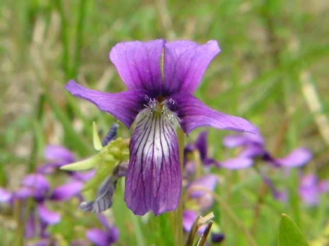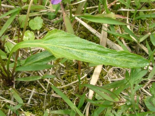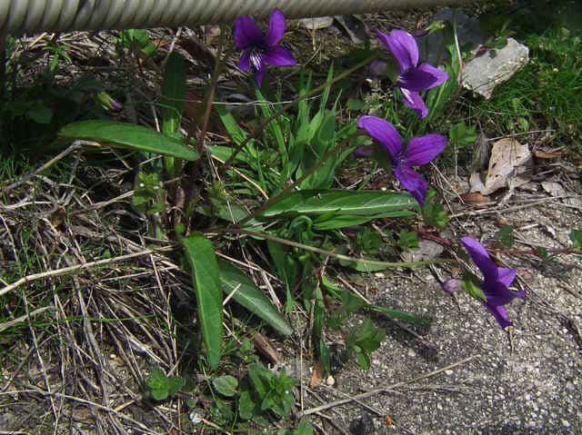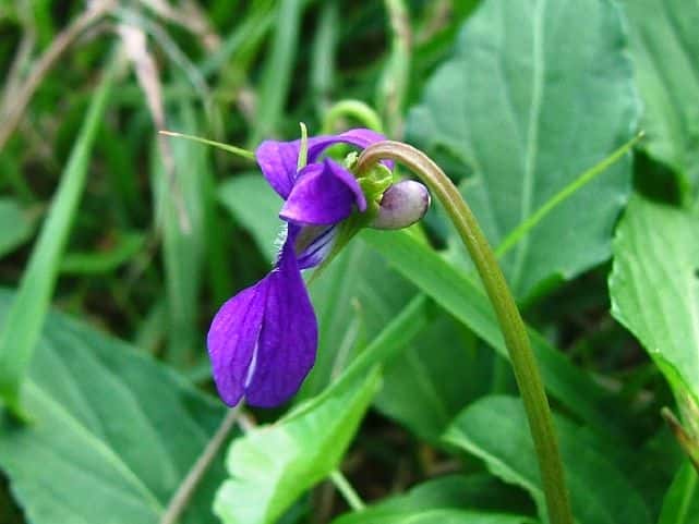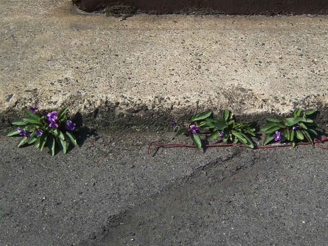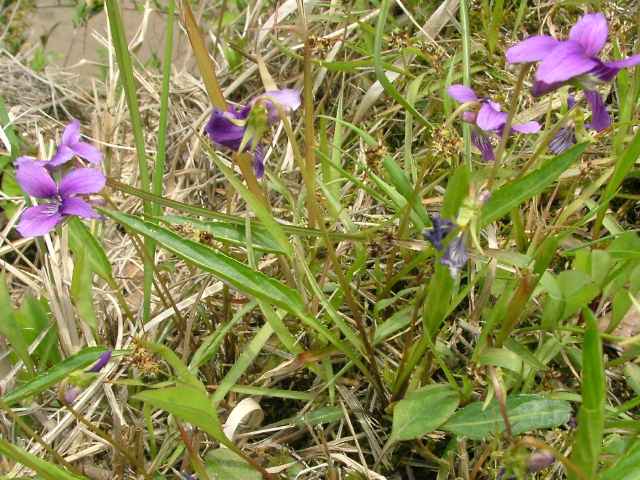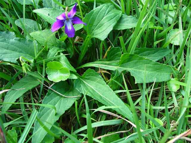 | 多年草 日本全土の人家付近から丘陵まで日当たりのよいところにふつうに生える。根は黄赤褐色で太い。高さは7〜11cm。葉は束生し、花期には長さ2〜9cmの長楕円状披針形で、先はまるい。葉柄には広い翼がある。夏の葉は大きく三角状披針形。花は大きく、ふつう濃紫色だが、白花品もある。花弁は長さ1.2〜1.7cm。側弁には白い突起毛がある。距は長さ5〜7mm。柱頭はカマキリの頭のようにふくらむ。花期は4〜5月。(野に咲く花) 学名は、Viola mandshurica スミレ科スミレ属 海岸型の変種で葉が厚くて光沢がある2変種があり、日本海側に分布するものをアナマスミレといい、太平洋側のものをアツバスミレという。 スミレの分類 |