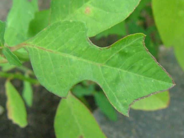 | ▼切れ込みのない葉もある。 | ▼茎を切ると白い乳液が出る。 | ▼葉は上部に集まる。 |