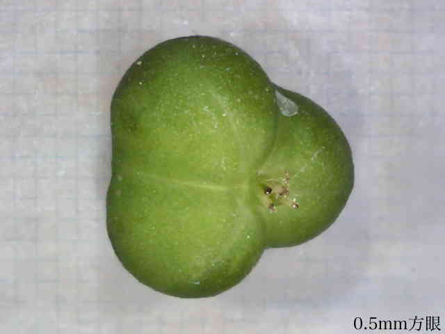 | ▼果実は3稜があり、中央に花柱が残る。 | ||