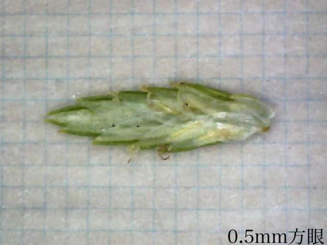 | ▼花序枝は長さ約7cm。 | ▼小穂は長さ約5mm。 | |