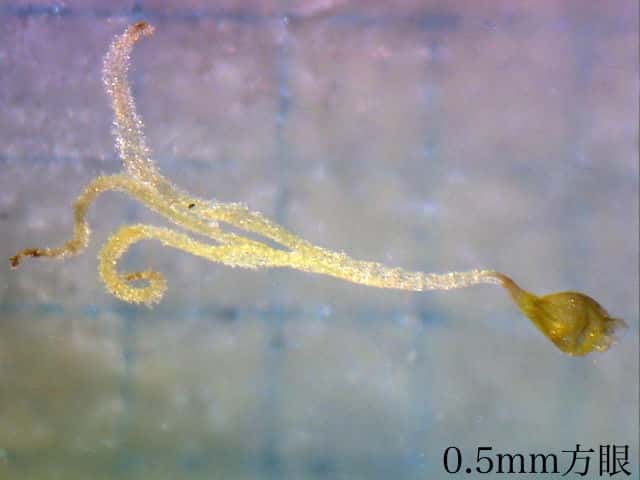 | ▼鱗片は長さ約2mm。 | ▼柱頭は3岐し、鱗片の内側に葯がある。 | |