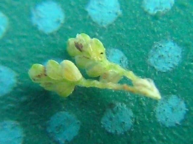 | ▼柱頭は3裂する。 | ▼鱗片は長さ約0.6mm、果実とほぼ同長。 | ▼果実は長さ約0.6mm。 |
