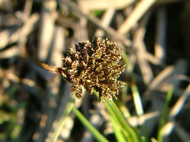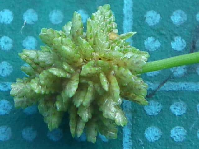 | ▼茎の先に長い苞がある。 | ▼球形の花穂は直径約1cm。 | |