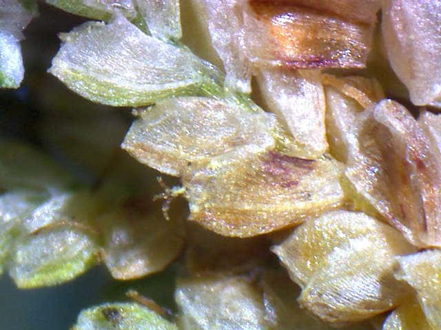 | ▼鱗片は長さ約0.6mm、果実とほぼ同長。 | ▼果実は倒卵形、3稜がある。 | ▼果実は長さ約0.6mm。 |