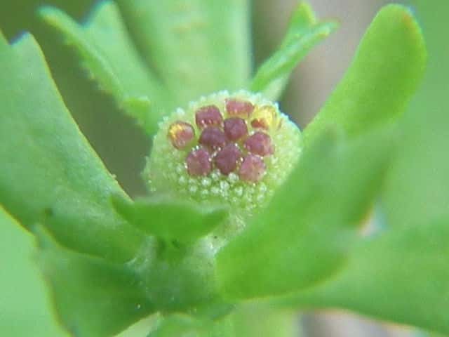 | ▼雌花の果実、長さ約1mm。 | ▼両性花の果実。 | |