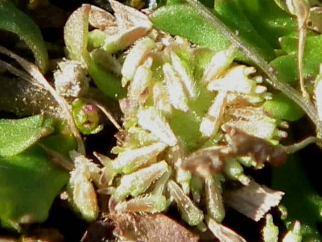 | ▼果実は長さ約1mm、上向きの毛がある。 | ▼葉は長さ約6mm。 | ▼葉の裏面。 |