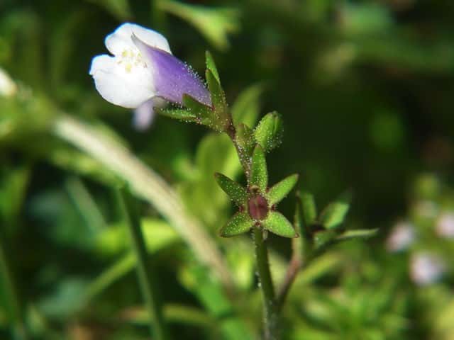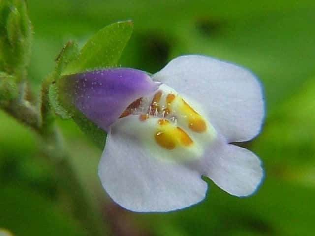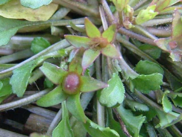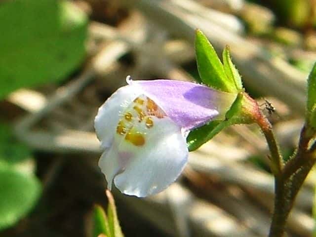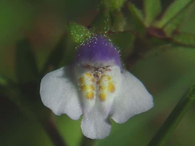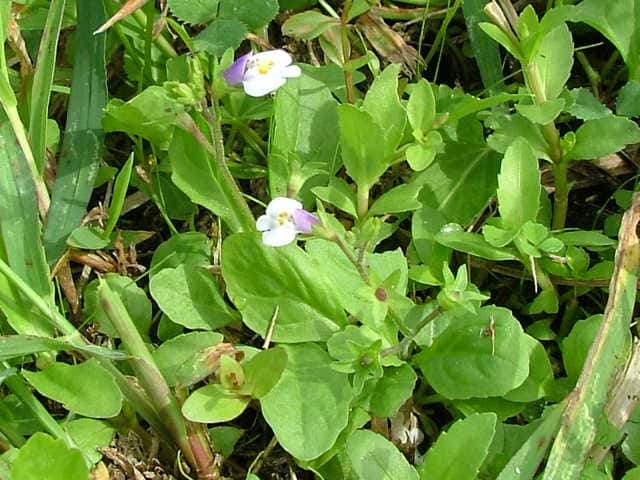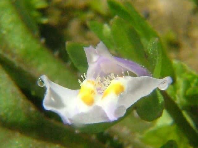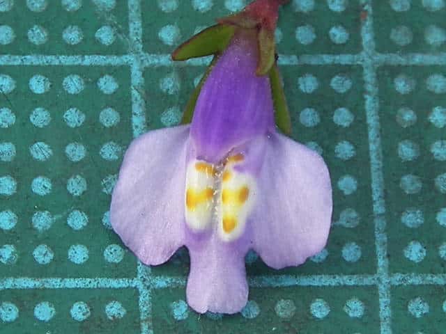 | v花茎は伸びるが、匍匐枝は出さない。 | ▼サギゴケとの花の比較。(実線:1cm方眼) | |