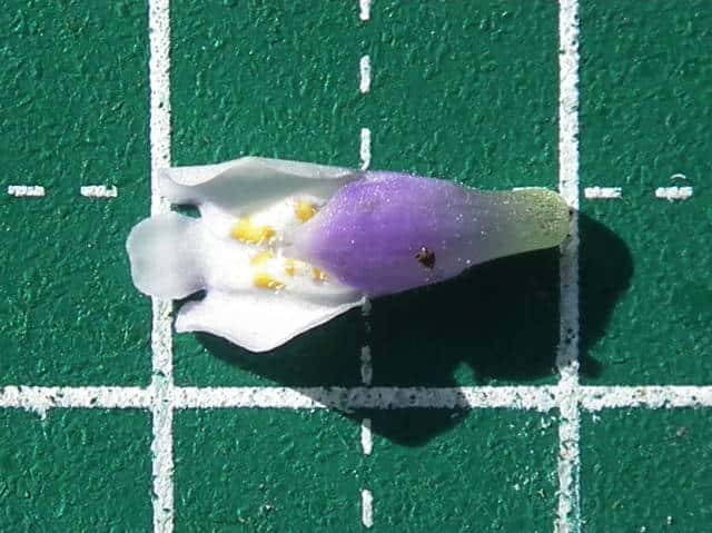 | ▼2014年5月11日 新庄 | ▼下唇に黄色い斑点がある。 | ▼花は長さ約1cm。 |