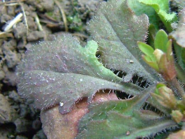 | v種子は長さ0.45〜0.5mm。 | ▼不規則な網目模様がある。 | ▼茎には毛がある。 |