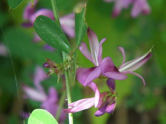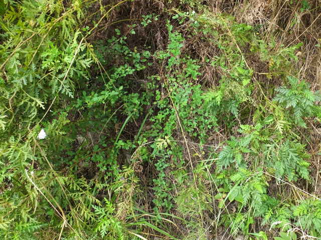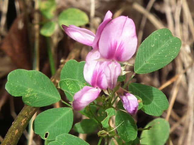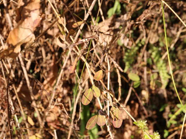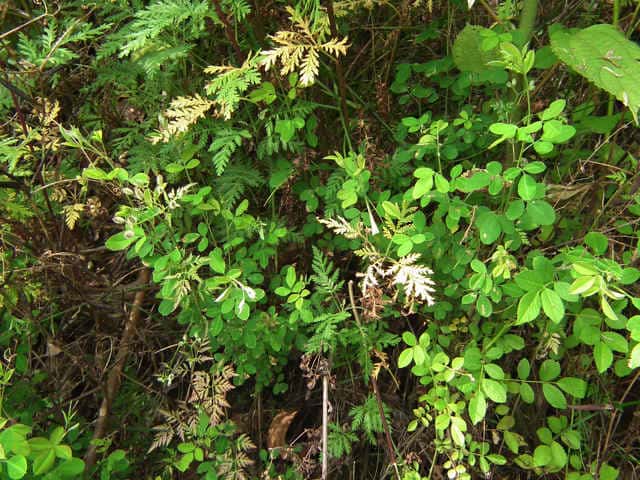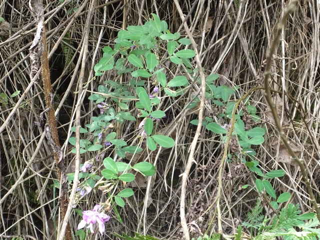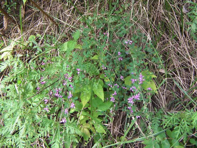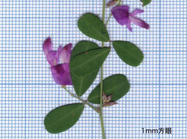 | 落葉小低木 中国原産の帰化植物で、法面緑化の種子に紛れて帰化している。 下記の詳細は、「中国植物志」を私が適当に日本語訳したので、間違った説明になっているかもしれない。 「茎は基部近くで分枝し、長さ30〜100cmになる。枝には稜があり、灰白色の毛がある。托葉は線形、長さ4〜5mm、先端は刺状。葉は3出複葉で、小葉は倒卵形、広倒卵形、長楕円形で、長さ1〜1.5cm、幅0.6〜0.9cm、先端はわずかに凹み、鈍角〜円頭、またはほぼ切形で、刺状突起がある。基部はくさび形。表面はまばらに伏毛があり、裏面は密に白い伏毛がある。側小葉はやや小さい。葉腋に総状花序を出し、明らかに葉の長さを超えて花柄を伸ばす。小苞片は卵形、長さ約1mm、先端は急に尖る。萼は長さ4〜5mm、白い伏毛が多い。5裂し、裂片は披針形又は卵状披針形、長さ2〜3mm、先端は次第に尖る。花は赤紫色、青紫色の多数の花をつけ、旗弁は楕円形、長さ8mm、先端は円形、基部は有柄。翼弁はやや短い。龍骨弁は旗弁より長く、鈍頭。果実は広卵形、長さ約7mm、宿存する萼から出て、毛が密生し、網状の脈がある。花期は6〜9月。」 学名は、Lespedeza floribunda マメ科ハギ属 |
