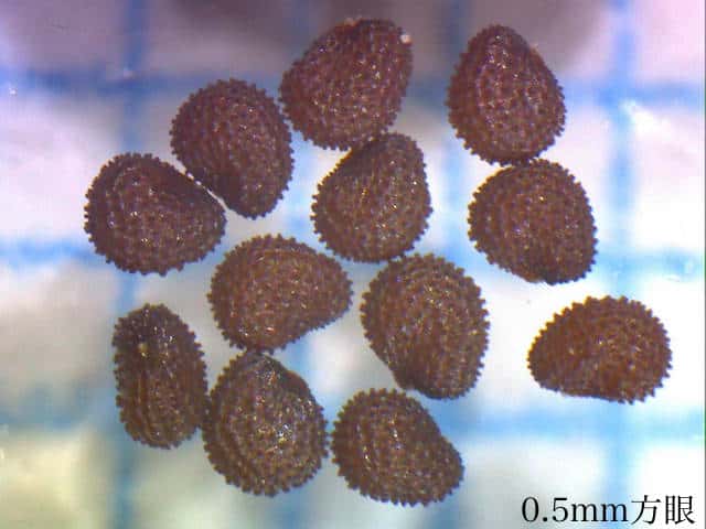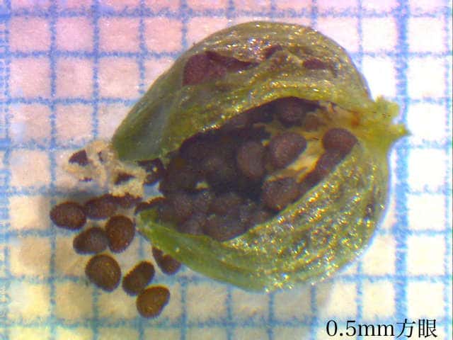 | 種子は長さ約0.4mm。 | 小さな柱状の突起がある。 | |