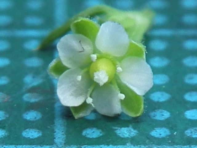 | ▼果実は熟すと先端が5裂し種子が出る。 | ▼果実は長さ約3mm。 | |