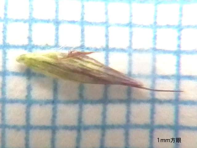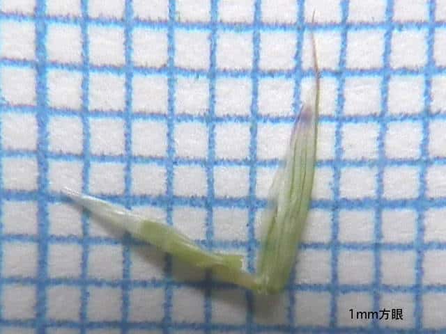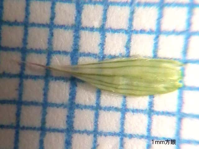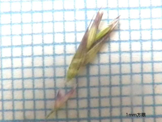 | ▼4小花があり、苞穎は2mm、3mm。 | ▼護穎と内穎は同長。 | ▼小花、護穎の芒は約2mm。 |