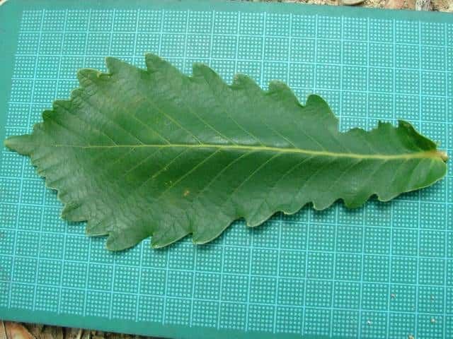 | ▼2008年7月5日 カシワに似るが鋸歯が尖りぎみで、コナラとの雑種と思われる。鹿島 | ||