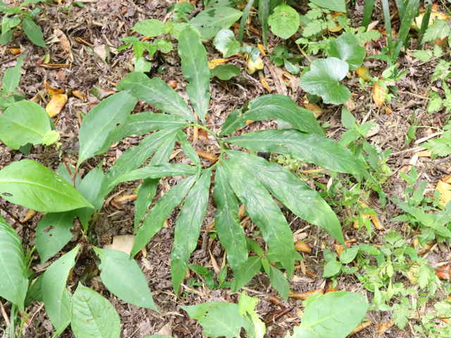 | ▼花序は葉柄の基部から直立する。 | ||