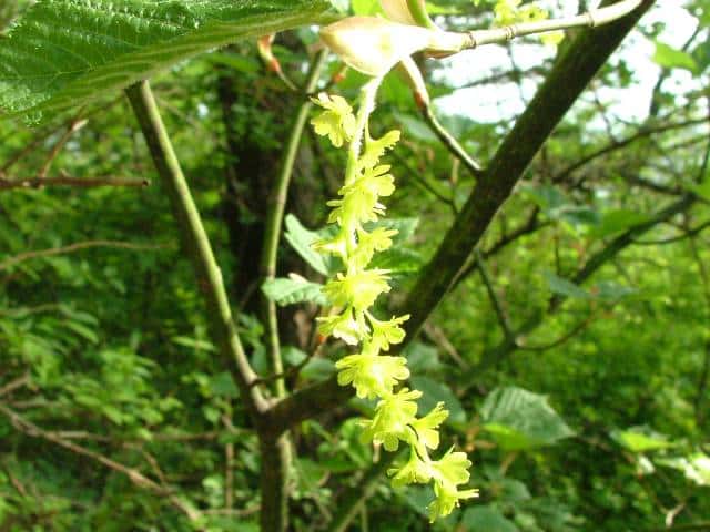 | ▼花は直径約7mm。 | ▼雄花序は下垂する。 | |