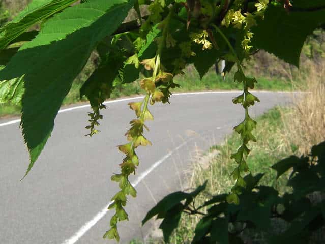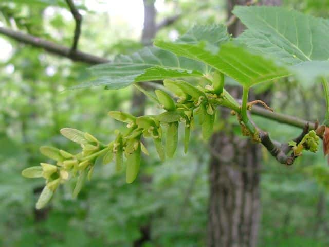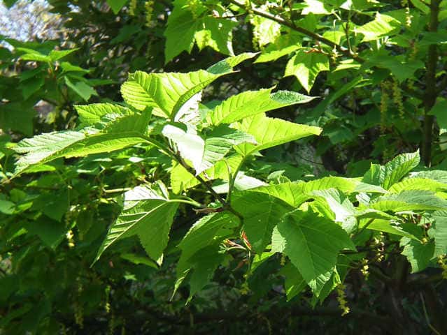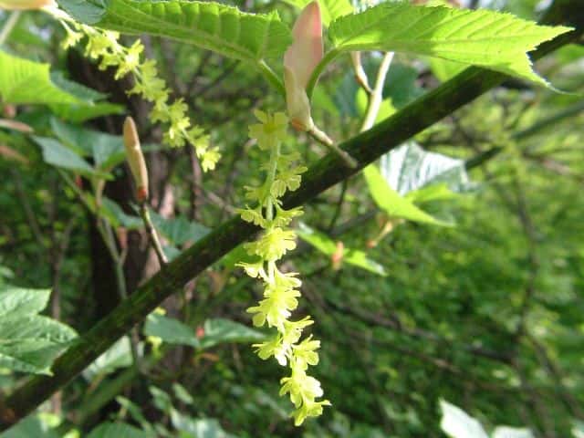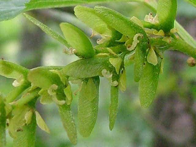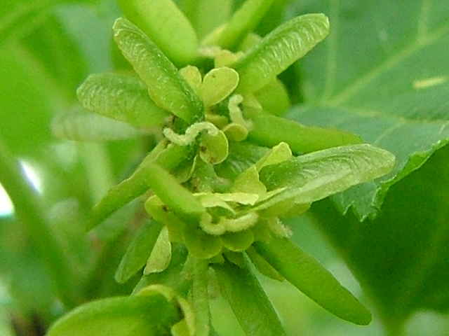 | ▼若い果実は長さ約1.9cm。 | ▼雌雄同株の木 | ▼雄花序 |