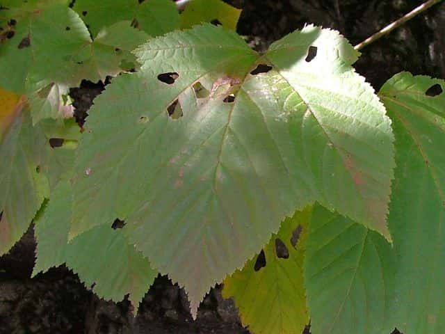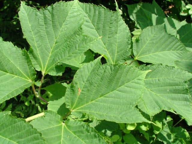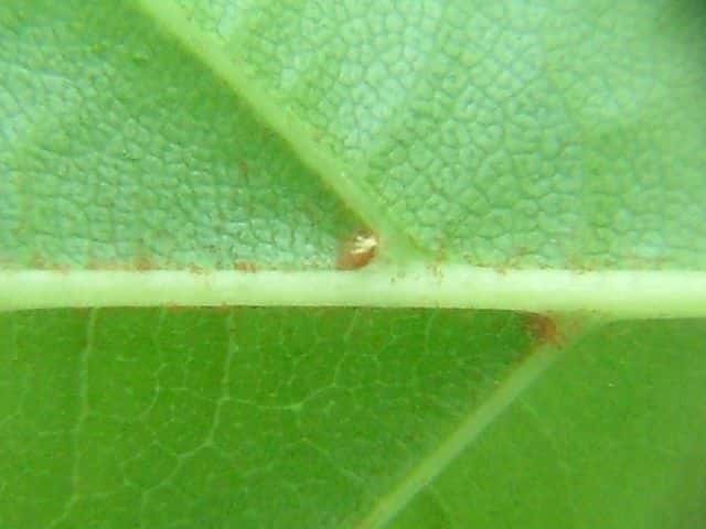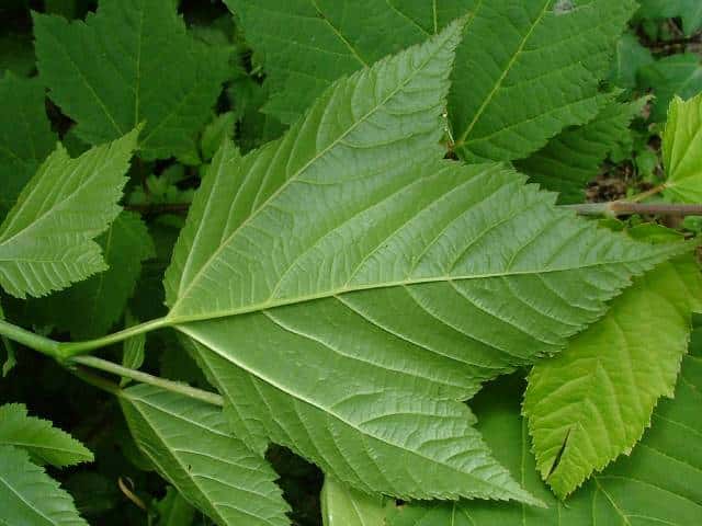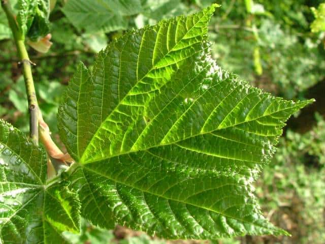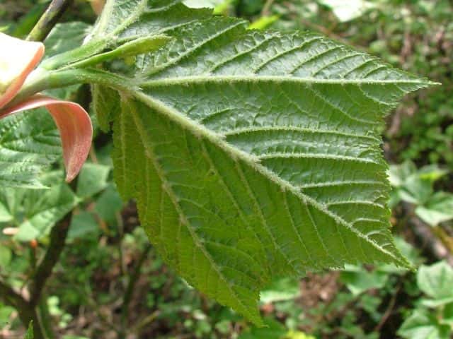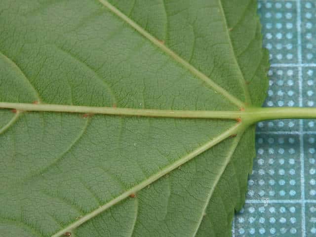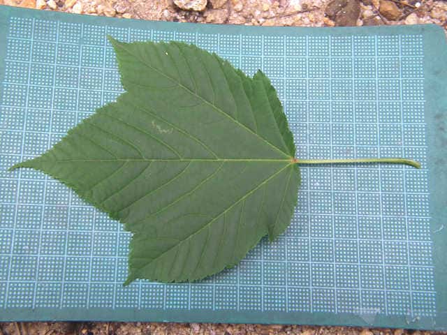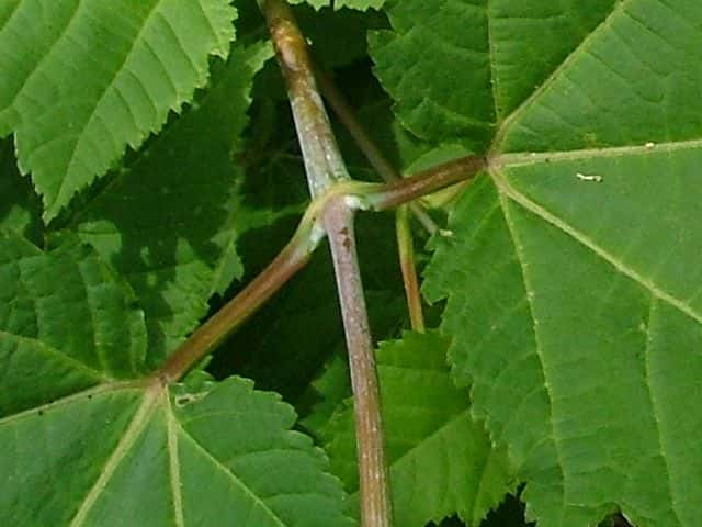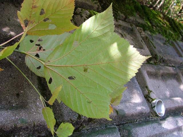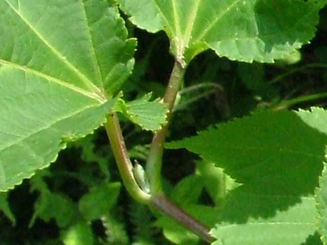 | ▼2009年6月14日 宍道 | ▼葉柄に溝がある。 | ▼脈状に褐色の毛があり、葉腋に毛叢がある。 |