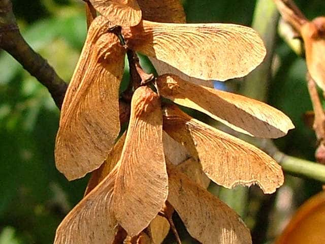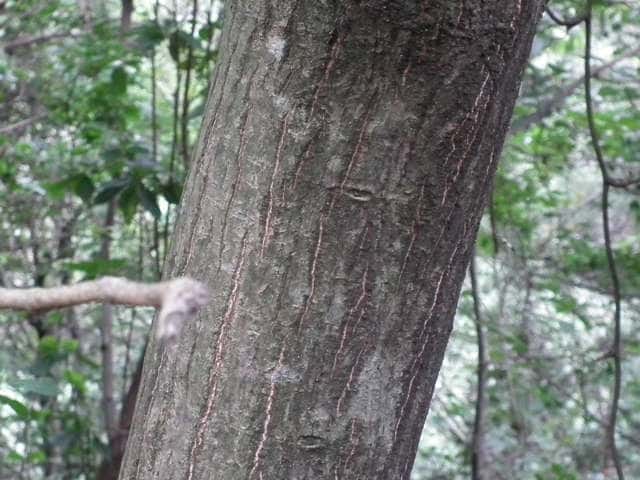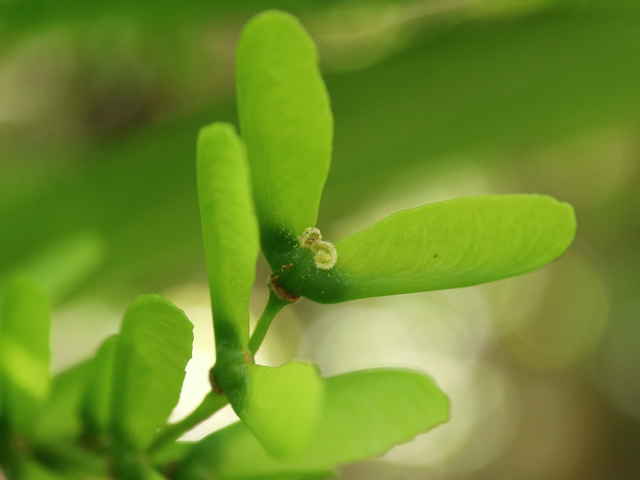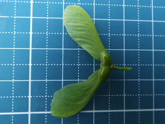 | ▼分果は翼があり、長さ約2.3cm。 | ▼樹皮は菱形状の皮目と、縦に割れ目が入る。 | |