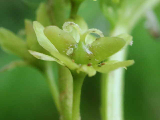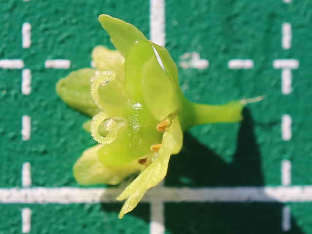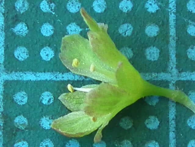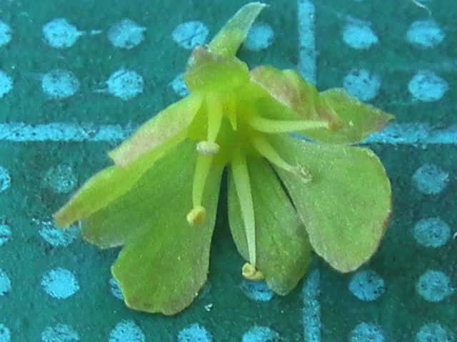 | ▼花は直径約7mm、退化した雄しべがある。 | ▼花弁を一部除いた花。 | |