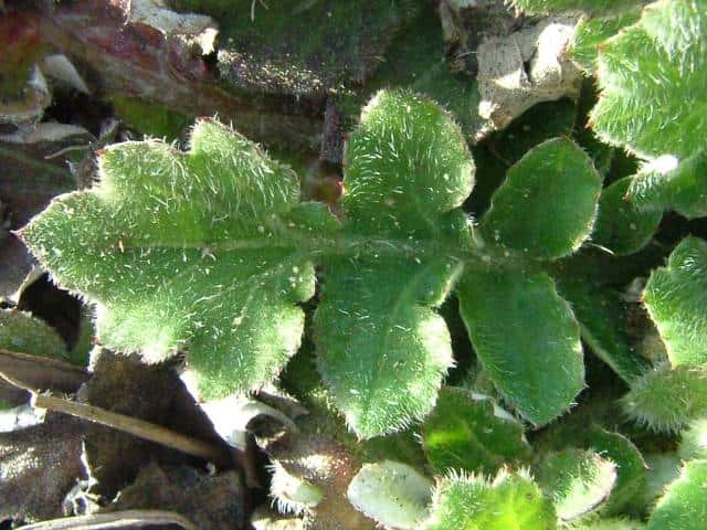 | ▼葉はロゼット状につく。 | ▼葉は長さ約11.5cm、深裂する。 | |