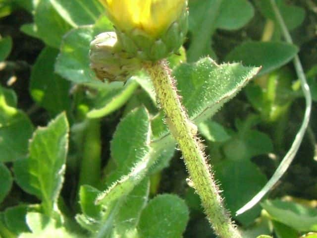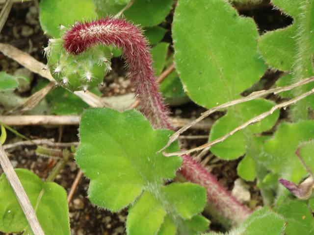 | ▼舌状花には冠毛がない。 | ▼蕾。 | ▼蕾の花柄には毛が密生する。 |
