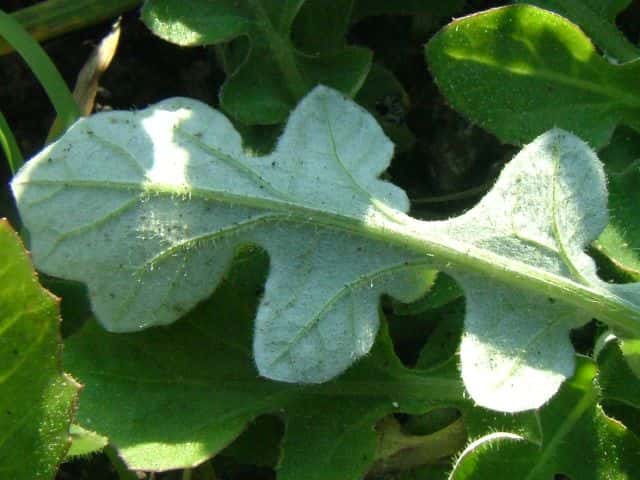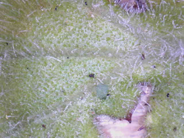| ▼葉には毛が密生する。 | ▼葉の裏面は白い。 | |