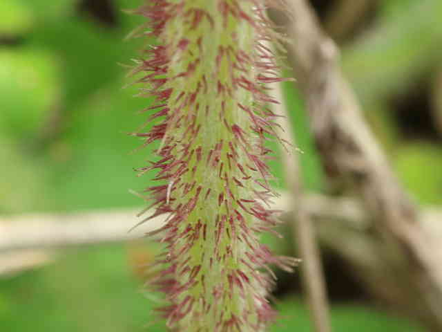 | ▼葉の裏面には毛が密生する。 | ▼長毛と密生する白い綿毛がある。 | ▼花が終わると花柄が倒れる。 |