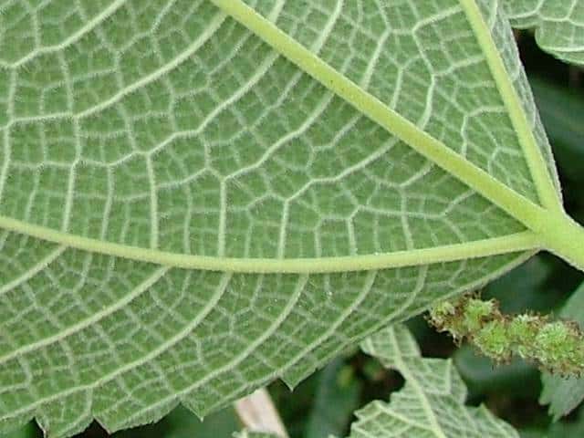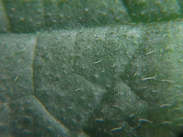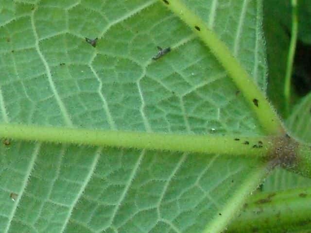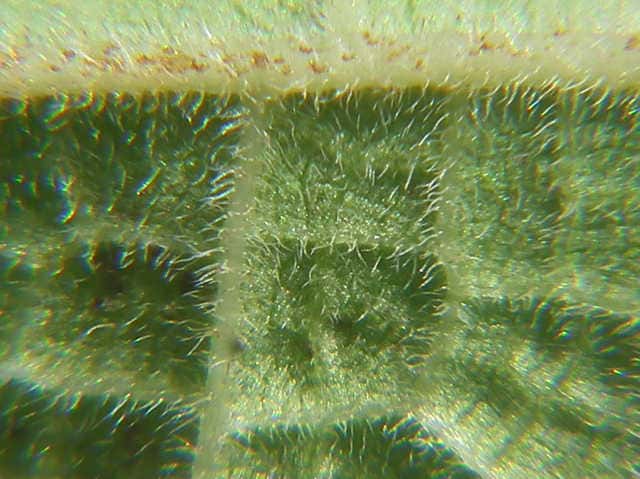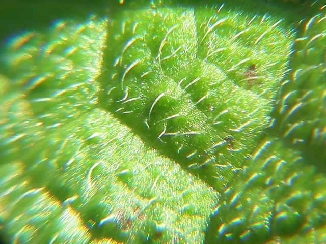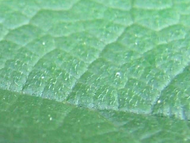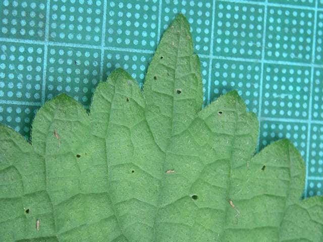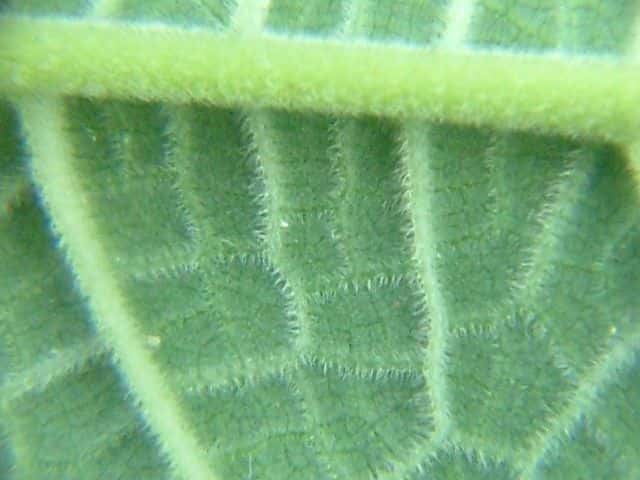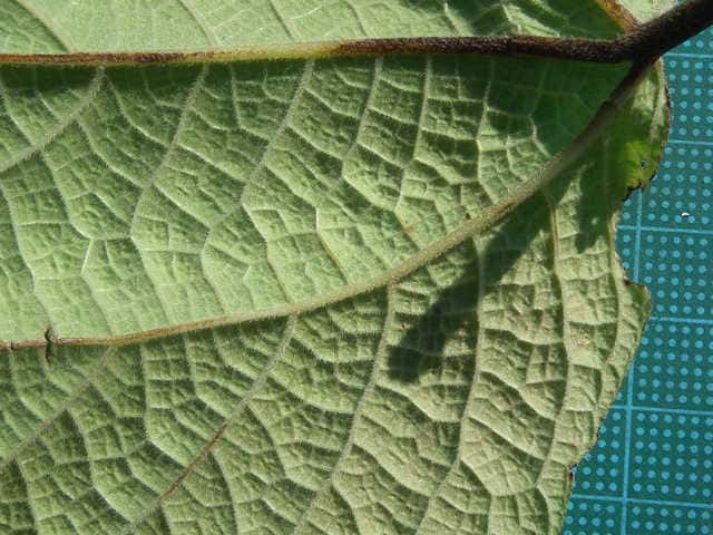 | ▼葉表の毛。 | ▼葉裏の全面にビロード状の毛がある。 | |