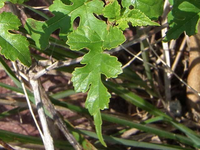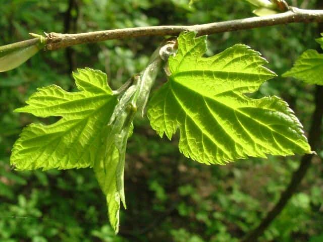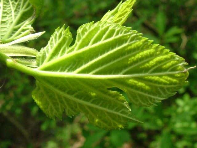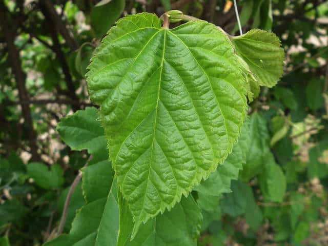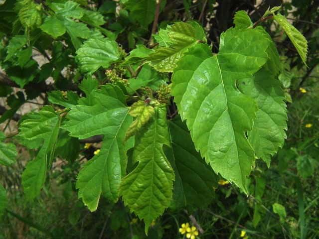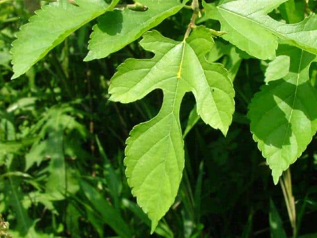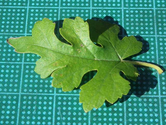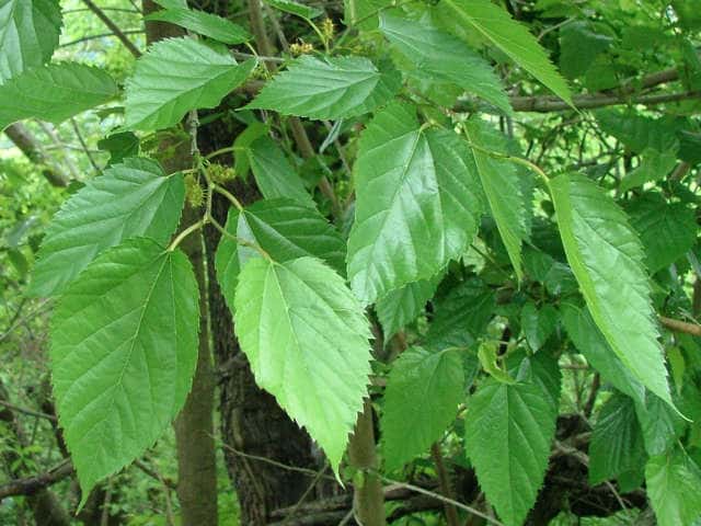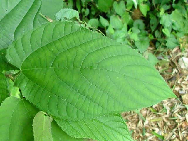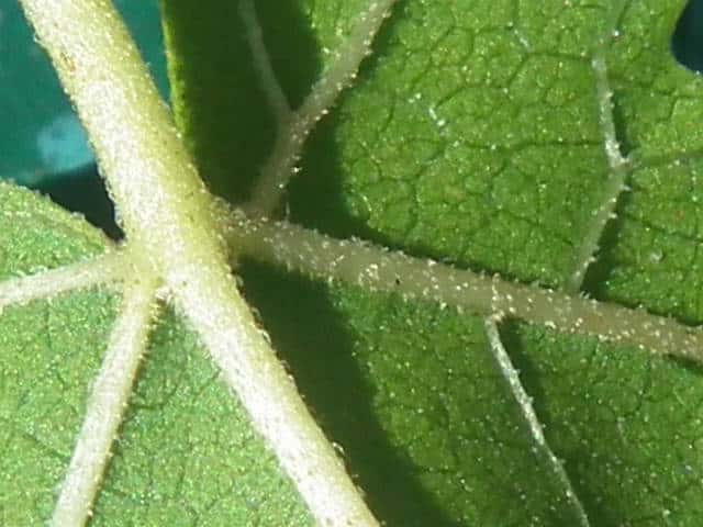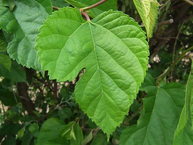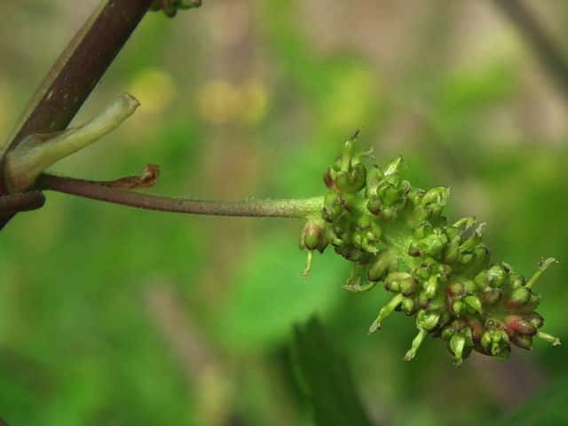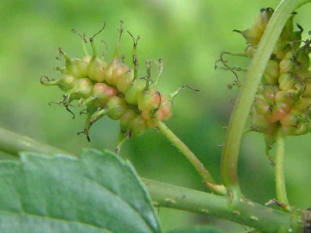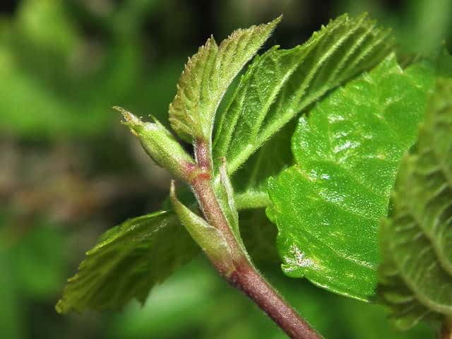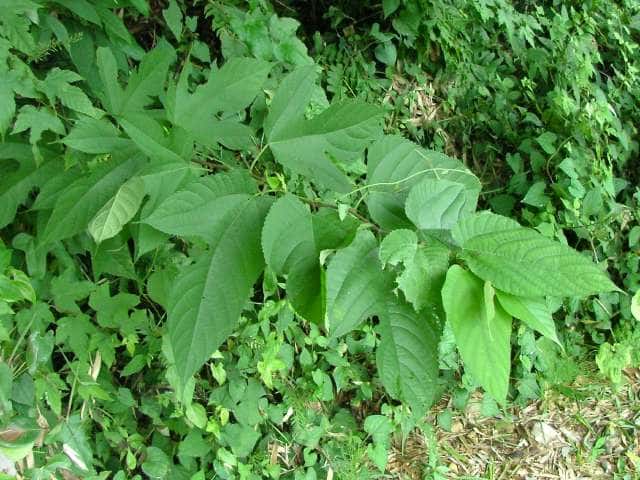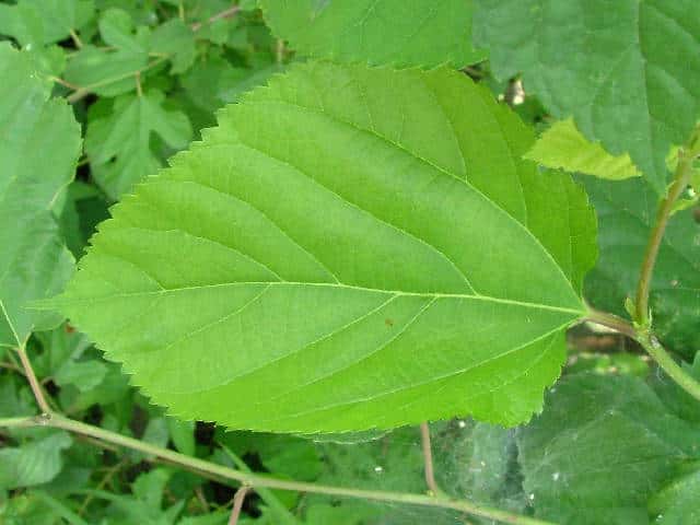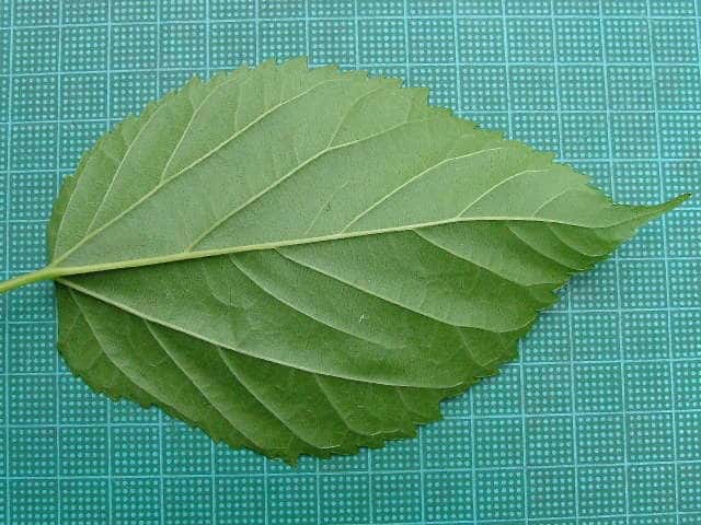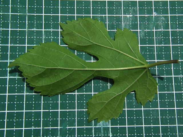 | ▼2014年5月22日 雌花 八雲 | ▼葉先がつき出し、粗い尖った鋸歯がある。 | |