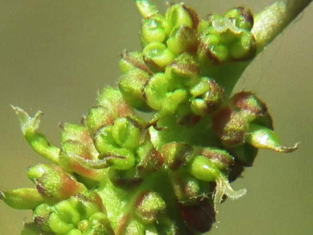| ▼雄花は4個の花被片と4個の雄しべがある。 | ▼雌しべと雄しべがある奇形の花(?)。 | |