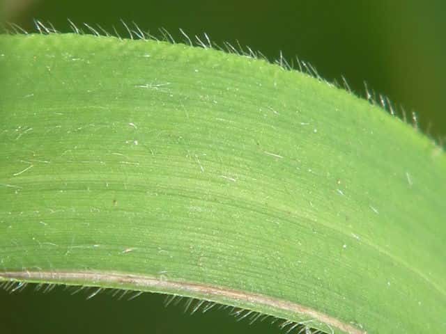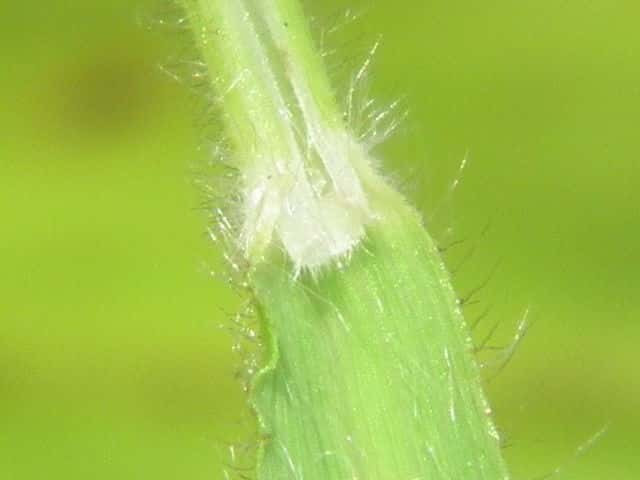 | ▼葉舌は切形。 | ▼節は膨らみ毛が密生する。 | ▼葉や葉鞘には毛が密生する。 |