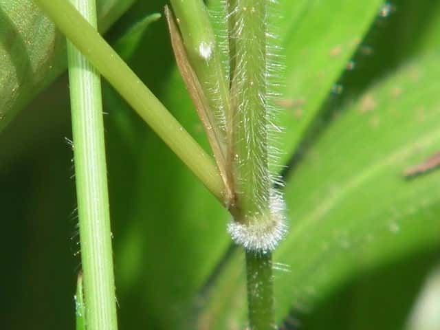| ▼葉鞘は毛が多く、節には毛が密生する。 | ||