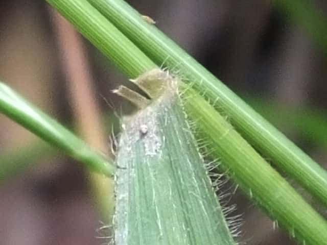 | ▼葉鞘や葉には毛が密生する。 | ▼葉舌は切形。 | |