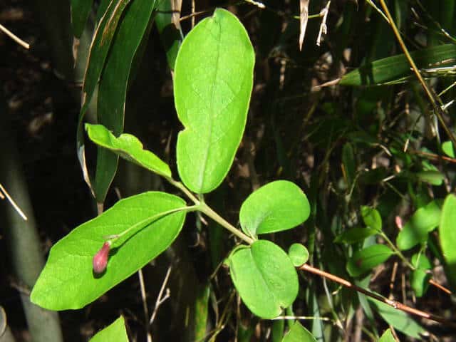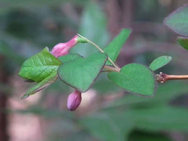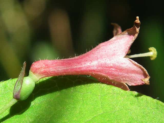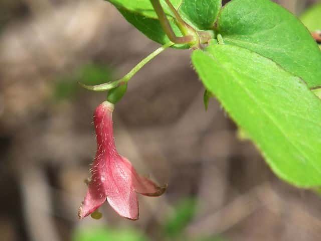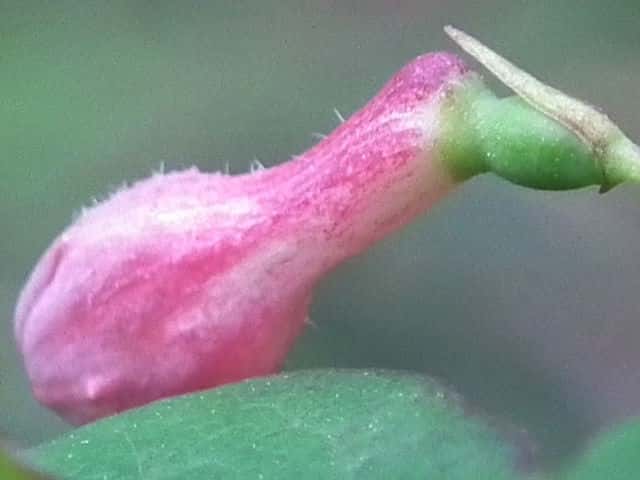 | 落葉低木 本州(中西部)〜九州の山地に多い。高さ3mに達する。枝は中実で白色の髄があり、葉柄や花柄とともに毛を散生し、ときに腺毛も混じえることもある。葉は広披針形〜卵形、ふつう先は短くとがり、基部はくさび形、長さ3〜8cm、幅1.5〜5.5cm、葉柄は長さ3〜5mm。葉より先、または葉と同時に開花する。花柄は細く、垂れ、長さ1〜2cm、先に1花ときに2花をつける。苞は線形で1個ときに2個あり、長さ2〜8mm、ときに葉状になる。小苞はふつう目立たない。萼片も目立たない。花冠は漏斗状で下垂し、長さ12〜20mm、バラ紅色、花筒は細く、長さ10〜12mm、5裂片はほぼ同大で長さ7〜10mm。雄しべは花冠裂片より短い。子房は1個、2室、2個つく時は互いに離れている。花冠や子房は無毛のことが多い。6〜7月、液果は紅熟し、広楕円形で長さ10〜15mm、食用となる。種子は楕円形で長さ4〜5mm。花期は4〜6月。毛の性質や葉形に変化が多く、ふつうさらに以下の変種が区別されるが、中間形もある。(日本の野生植物) 冬芽は長さ2〜4mmの卵形。芽鱗は1〜2対。(樹に咲く花) 学名は、Lonicera gracilipes var. gracilipes スイカズラ科スイカズラ属 ウグイスカグラはふつう全体無毛で、ヤマウグイスカグラは枝、葉、花に毛があり、ミヤマウグイスカグラは腺毛がある。 |
