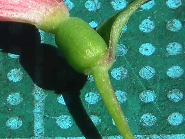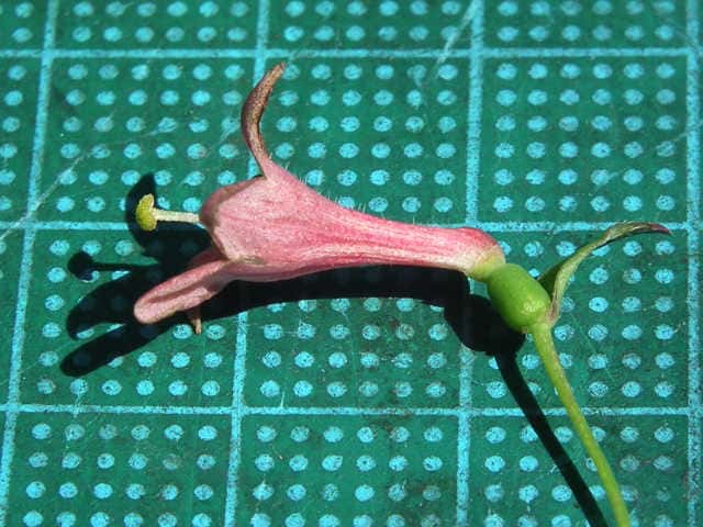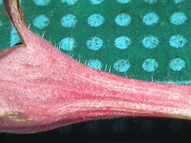 | ▼花は長さ約1.6cm、苞は約7mm。 | ▼花冠の毛。 | ▼子房や花柄には毛がない。 |