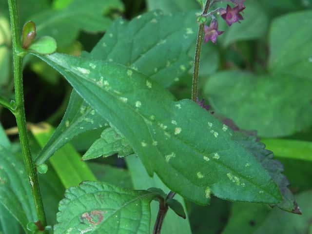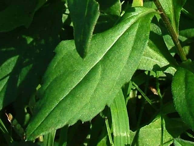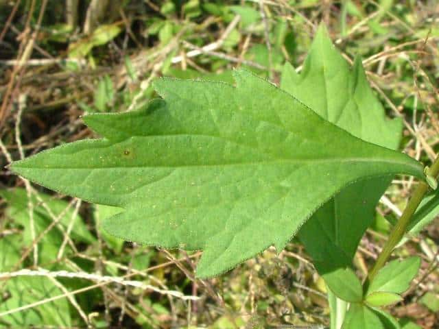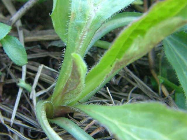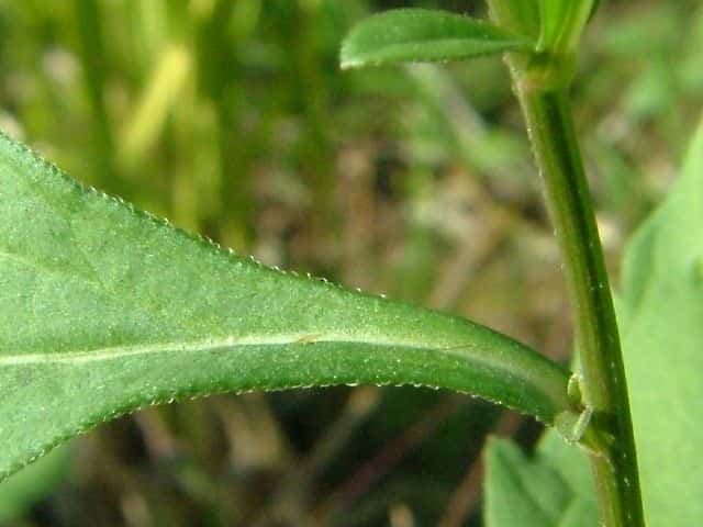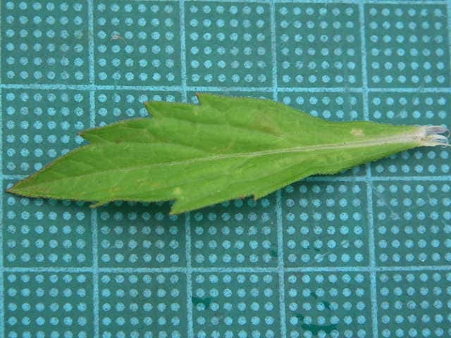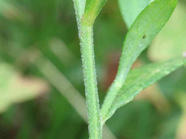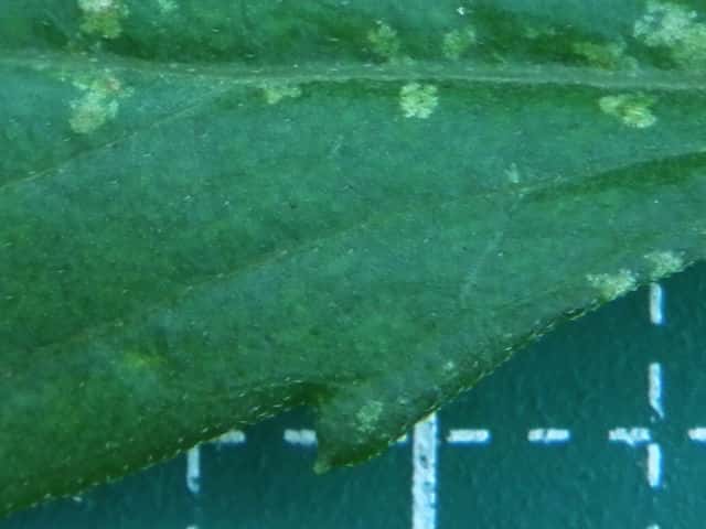 | ▼葉の裏面に短毛がある。 | ▼茎に上向きの伏毛がある。 | |