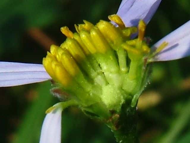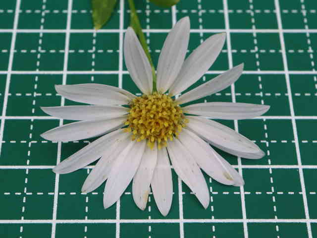 | ▼頭花は直径約3.5cm。 | ▼舌状花(上)と筒状花(下)。 | |