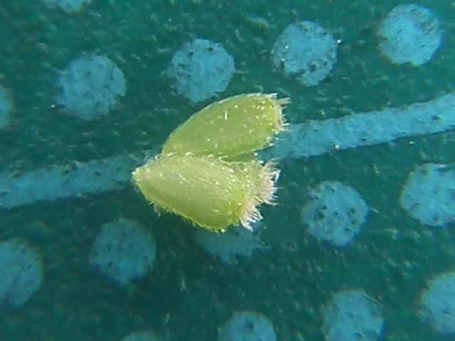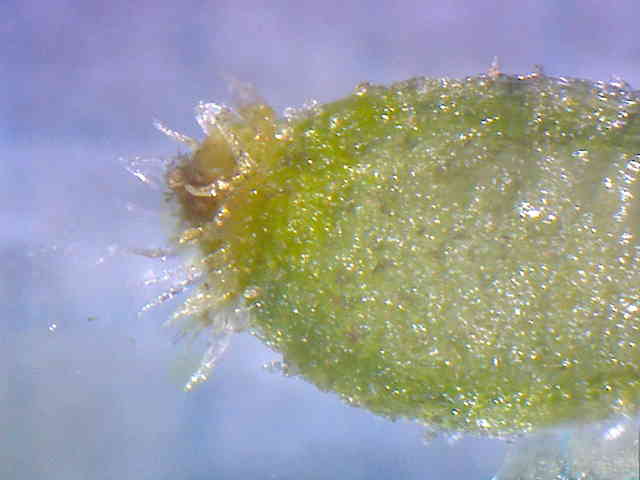 | ▼若い果実の冠毛。 | ▼冠毛は長さ約0.3mm。 | |