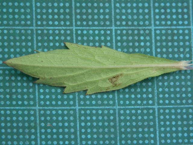 | ▼葉は長さ約4.5cm。 | ▼短毛が密生する。 | ▼葉の裏面。 |