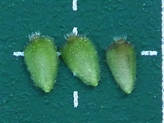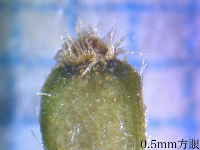 | ▼果実は長さ約3mm。 | ▼冠毛は長さ0.5mm未満。 | |