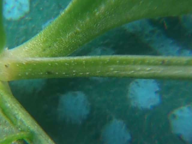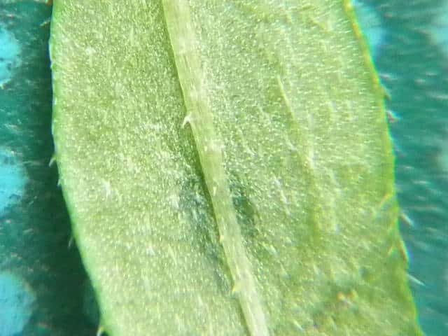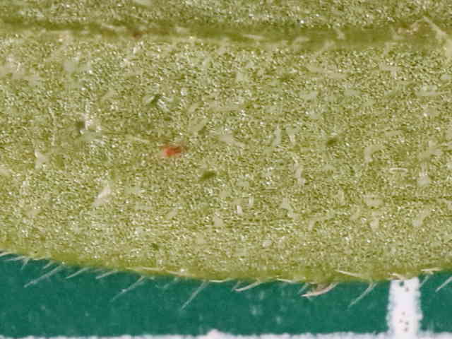 | ▼葉の縁と裏面に毛がある。 | ▼茎は無毛とされるが、刺状のものがある。 | |