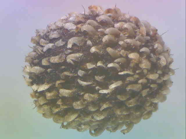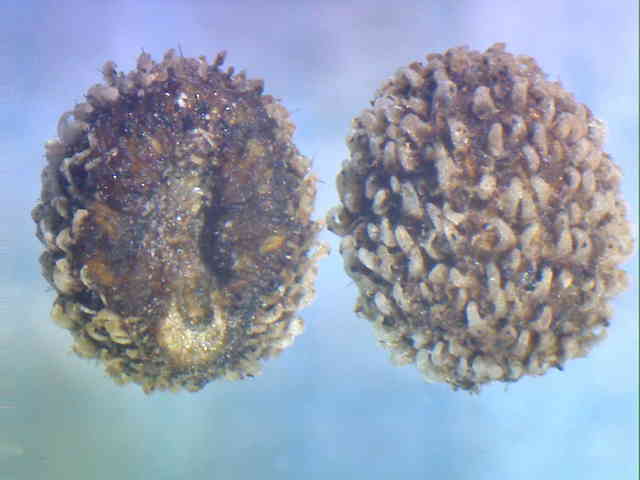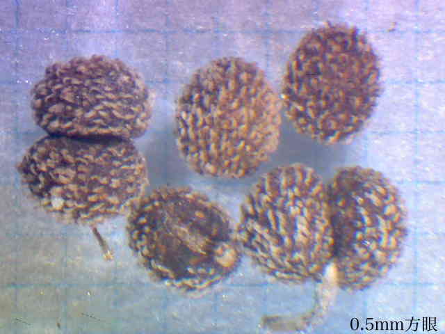 | ▼果実は2個の分果が対になる。 | ▼果実は長さ1〜1.2mm。 | ▼分果の腹面(左)と背面(右) |