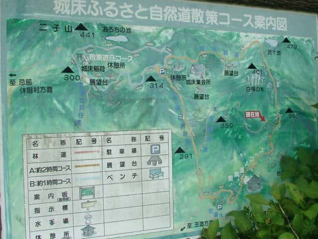 | 台風は通り過ぎたが、空は曇り空、蒸し暑い。54号線から金山要害山の脇を通って、菅原まで抜けました。八重山に登ろうと思っていましたが、山へ入るところでちょうど雨が降り出し、だんだん強まってきました。公民館まで引き返し、しばらく雨宿りをしていました。 雨は上がってきましたが、また降られても困るしと、山はあきらめました。このまま玉湯へ抜けて、城床へ上がってみることにしました。城床へはいつもとは違う道を上がろうと、散策道Aコースを通ることにしました。しばらく舗装道路が続きましたが、最後の家を過ぎると、舗装はなくなり山道となってしまいました。順路と標識があるので、道は間違っていないようなので、自転車を引きながら行くことにしました。40分ほど上がると、舗装の道に合流しますが、途中では道が狭くなったり、急な道もあります。また、最後の山から出るところは、田んぼへの猪避けの柵がしてあり、止めてある紐を緩めて開けなければ出られませんでした。 曇り空の一日で、陽射しの熱さはありませんでしたが、湿気の多い蒸し暑い一日でした。 |