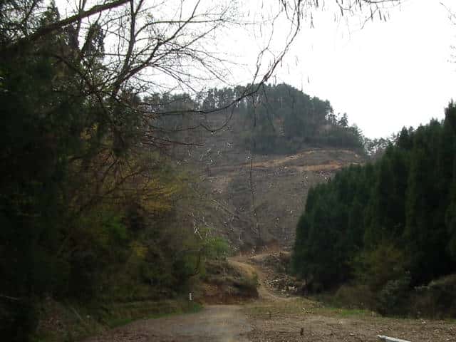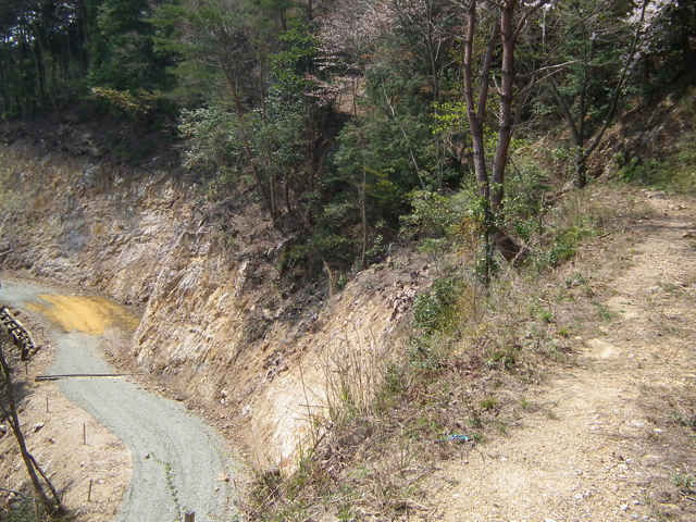 | 宍道側からの登山道 植林のため伐採され無残な姿 |
